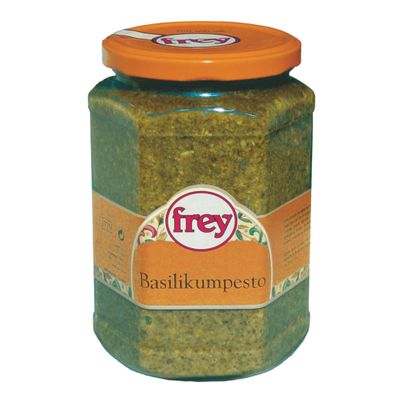 Entdecke das Basilikumpesto 720ml von Frey - Der Klassiker unter den Pestos! Perfekt zu Pasta, als Brotaufstrich, zu Käse oder Salat. Hergestellt mit Olivenöl, Basilikum, Grana Padano Käse, Mandeln, Knoblauch und Gewürzen. Genieße vielfältige Geschmackserlebnisse! Entdecke die Welt der Pestos mit Frey.