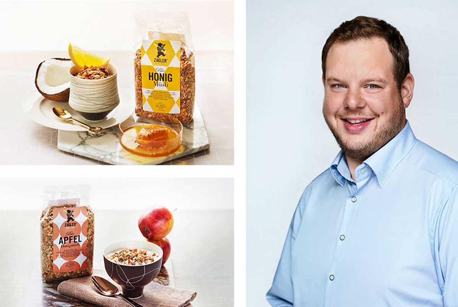 Da gibt's ordentlich was auf den Löffel. Florian Zagler mischt aus besten Bio-Zutaten und dem väterlichen Erfahrungsschatz von 35 Jahren eine neue Generation bärenstarker Premium-Müslis. Für alle, die statt herumzuexperimentieren lieber gleich zum Besten greifen. Spezialität des Müslibären sind die täglich frisch mit Honig gebackenen Sorten – die wohl knusprigsten Müslis im ganzen Land. Denn selbst in Milch oder Joghurt bleiben sie wunderbar kernig und knackig. Das Erfolgsrezept des Müslibären ist ganz einfach: HOCHWERTIGSTE ZUTATEN aus kontrolliert biologischem Anbau, in sorgfältiger Handarbeit mit österreichischem Bio-Blütenhonig veredelt. BEWÄHRTE REZEPTE, die große wie kleine Müslifans lieben und die so gut schmecken, wie sie aussehen. EINE MENGE ZEIT, um die Müsli-Kreationen schonend zu mischen und zu backen. In der Ersten Österreichischen Bio-Müsli Manufaktur in Braunau am Inn duftet es verführerisch nach Honig und Getreide, Früchten, Nüssen und Gewürzen, wenn die köstlichen Zutaten mit viel Sorgfalt, Handarbeit und Liebe – und täglich frisch – gemischt werden. So bleiben sie schön flockig und landen nicht als Staub in der Frühstücksschale.
