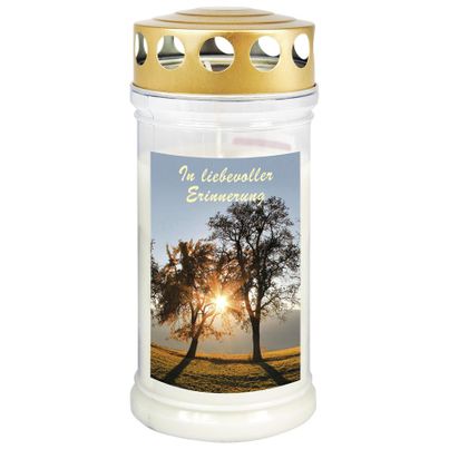 Die Grabkerze 'Baumpaar' von JEKA ist die ideale Wahl, um einen liebevollen Gedenkort zu schaffen. Diese nachhaltige Kerze besteht zu 100% aus Pflanzenöl und bietet eine umweltfreundliche Alternative zu herkömmlichen Grablichtern. Mit einer beeindruckenden Brenndauer von bis zu 4 Tagen sorgt sie dafür, dass dein Andenken über einen längeren Zeitraum erstrahlt.