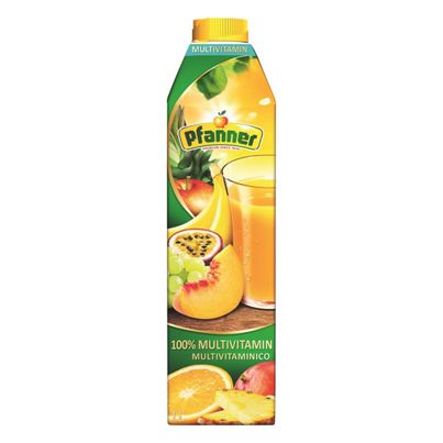 Der Multivitamin Saft 100 Prozent von Pfanner bietet dir eine erfrischende Mischung aus 13 sorgfältig ausgewählten Fruchtsorten. Mit einem Fruchtgehalt von mindestens 50% und der Zugabe von 8 essenziellen Vitaminen unterstützt dieser Saft deine tägliche Vitaminzufuhr auf köstliche Weise. Die Kombination aus Apfel, Orange, Birne, Ananas, Traube, Zitrone, Maracuja und Kiwi sorgt für ein harmonisches Geschmackserlebnis, während Pfirsich-, Aprikosen- und Bananenmark für eine samtige Konsistenz sorgen. Guaven- und Mangomark verleihen dem Saft eine exotische Note.