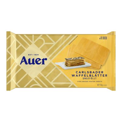 Die Waffelblätter eckig von MICHAEL AUER bieten dir die perfekte Grundlage für kreative Desserts und Waffeltorten. Diese ungezuckerten, knusprig-dünnen Blätter aus Wasser, Mehl und Stärke sind nicht nur vielseitig einsetzbar, sondern verleihen deinen Kreationen auch eine angenehme Textur. Hergestellt in Österreich, zeichnen sich die Waffelblätter durch ihre hohe Qualität und den unverwechselbaren Geschmack aus.